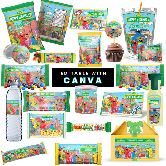 Sesame Street Birthday Party Favors Templates Bundle