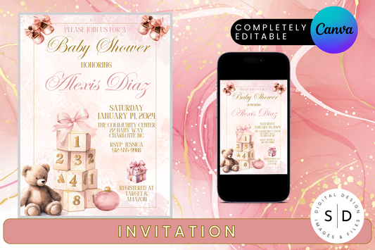 Blush Pink Baby Girl Watercolor Baby Shower Bundle