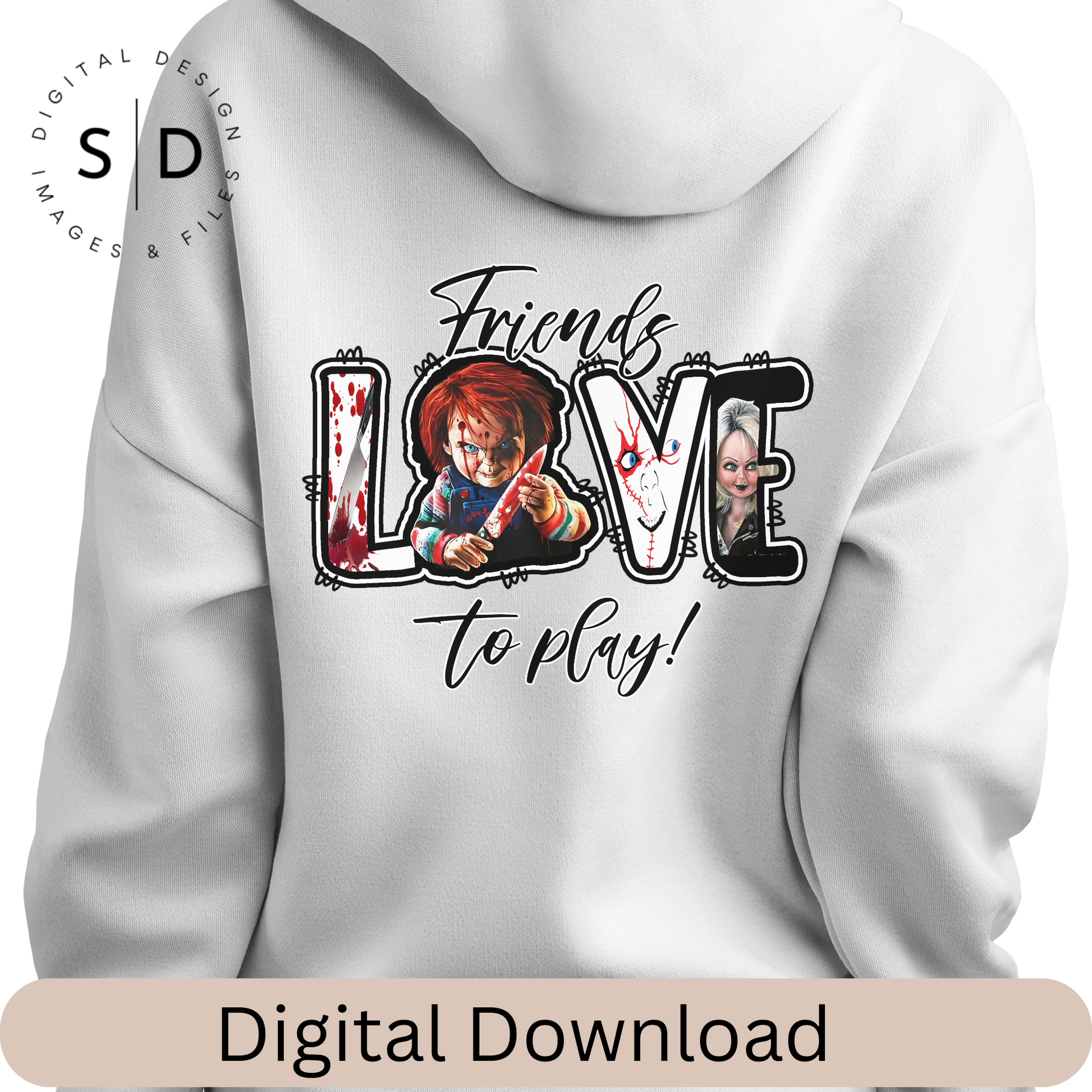 Our Friends Love To Play Halloween PNG is the ideal choice for Halloween enthusiasts. This sublimation file features an iconic Chucky from Childs Play, perfect for any festive occasion. Get creative and start crafting the perfect Halloween decorations with the help of this unique image.