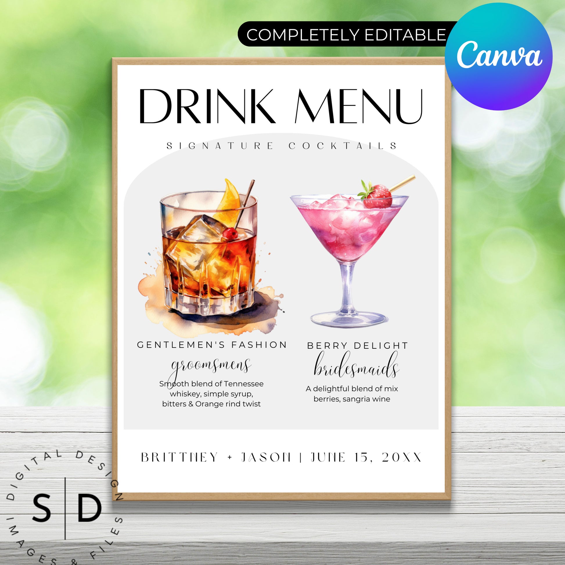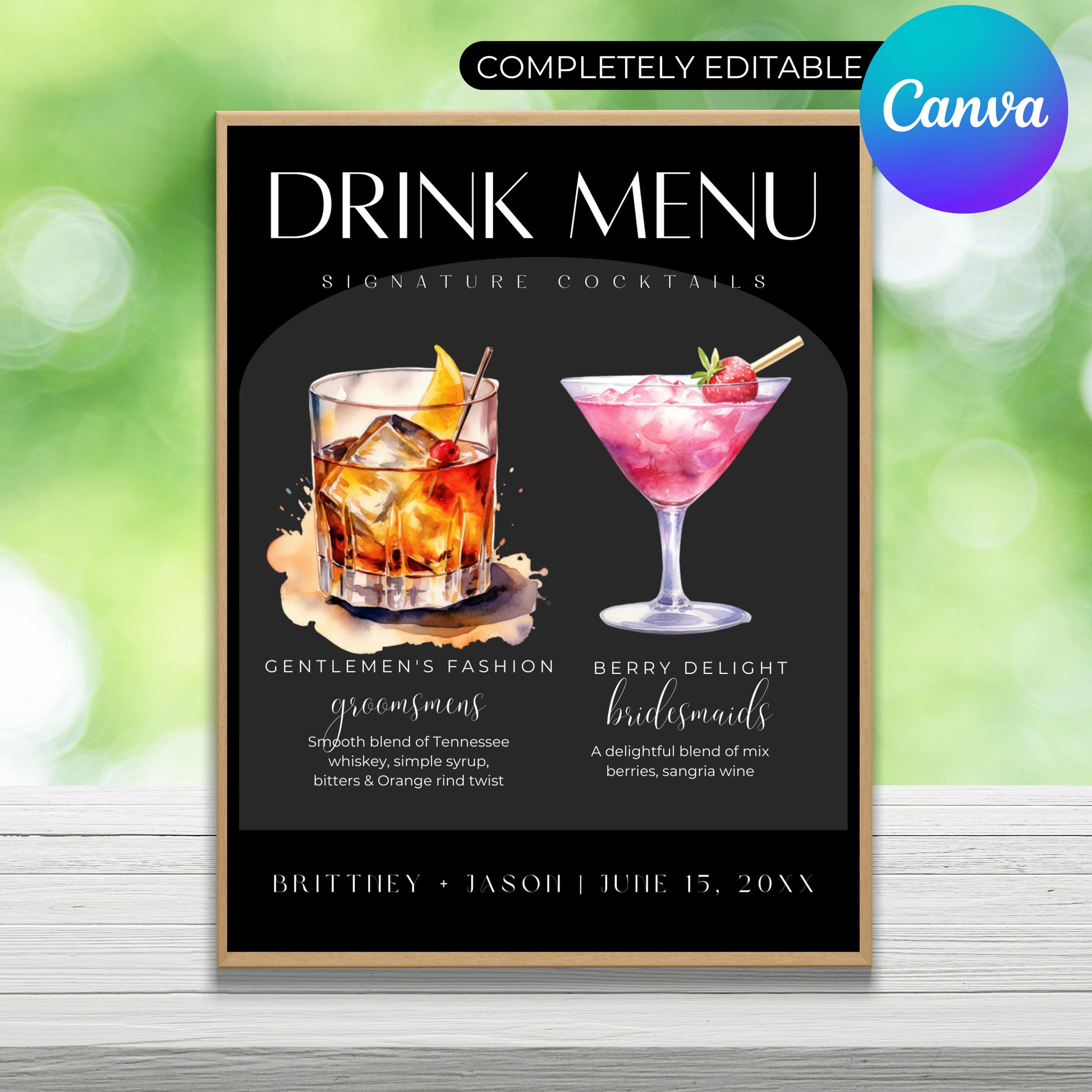 Try this stunning Canva template for crafting a personalized his & her drink menu that will leave your guests thirsting for more! With five versatile layouts to choose from, you can effortlessly design a menu that reflects your unique style. Elevate the experience with 53 captivating watercolor images of cocktails, adding a touch of elegance and flair. Customizable and user-friendly, this template is perfect for bars, restaurants, or special events. Let your creativity flow as you create a menu that sets the tone for an unforgettable beverage experience!